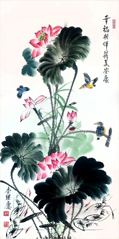 李继庆自小酷爱书画,遍临各帖,博采众长。自幼临摹王羲之、柳公权、颜真卿等书法大师的优秀作品及董其昌、任伯年、张大千、齐白石等著名国画大师的优秀画作。多年的苦耕勤耘,其书画功底扎实,造诣深厚。在传承书画大师们优秀章法的同时又师古不泥,形成自己唯有的风格。从他的绘画风格可以看出,其画法、气韵、格调是古典的, 而笔法、气势却是新颖的,画风、个性却又不失独特而自由的。李继庆的书画作品,象行云流水、大气磅礴,集神采、美感和动感于一体,雅俗共赏,是中国书画艺术的一朵奇葩。近年来,其书画作品备受国内外书画界人士和收藏爱好者的喜爱与认可,被视为收藏珍品。曾被授予中国新长城优秀艺术家、“全国纪念中国共产党成立 85 周年书画联展”银奖、“中华龙名家名人艺术世纪展”暨“龙 行天下国际巡回展”特授予“中华龙名家名人艺术世纪奖”及“中华 爱国 艺术家”荣誉称号、《春满世园》一丈二长 卷和《耐冬祝寿图》被青岛世界园艺博览会执行委员会收藏。曾被以中国廉政法学会、中国美协、中国书协为评委的 第二届、第三届、第四届《中国廉政文化书画精品展》中荣获优秀作品奖,并被收录入册, 在 2022 年冬奥会中被授予“国家重点推荐艺术家”荣誉称号。在 2022 年传承经典向未来,同书华章庆两会中被誉为“全国两会艺术传承代表人物”。庆祝香港回归 25 周年香江情·艺术梦艺术名家献礼媒体报道。2022 年荣获《中国文化艺术国际传播大使》称号!2022 年作为喜迎党的二十大重点推荐艺术家面向全国公开报道,并授予当代艺坛巨匠的荣誉称号!2022 年作品被卢浮宫收藏!2022 年入编雅昌国际交易在线网会员,2022 年邀约入编《大国军威中华魂——当代艺术名家建军 95 周年献礼》!2022 年荣获中国国礼艺术大师。2022 年被传承文化栏目组授予李继庆工作室!