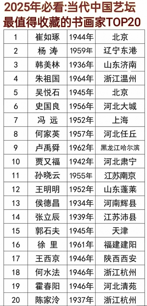 2025年必看:当代中国艺坛最值得收藏的书画家排行榜