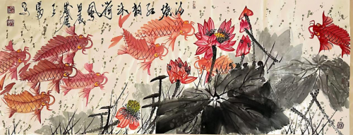 红韵当头满塘春(180×70cm)